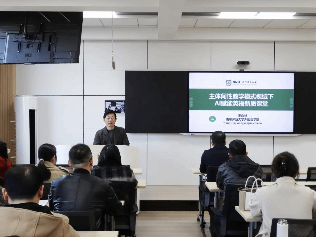 近日,pp电子游戏官网邀请南京师范大学pp电子游戏平台网站院长王永祥教授莅临pp电子游戏官网指导,并进行了一场以“主体间性教学模式视域下AI赋能英语新质课堂”为主题的学术讲座。全院60多名老师参加了讲座,现场气氛热烈,学术氛围浓厚。