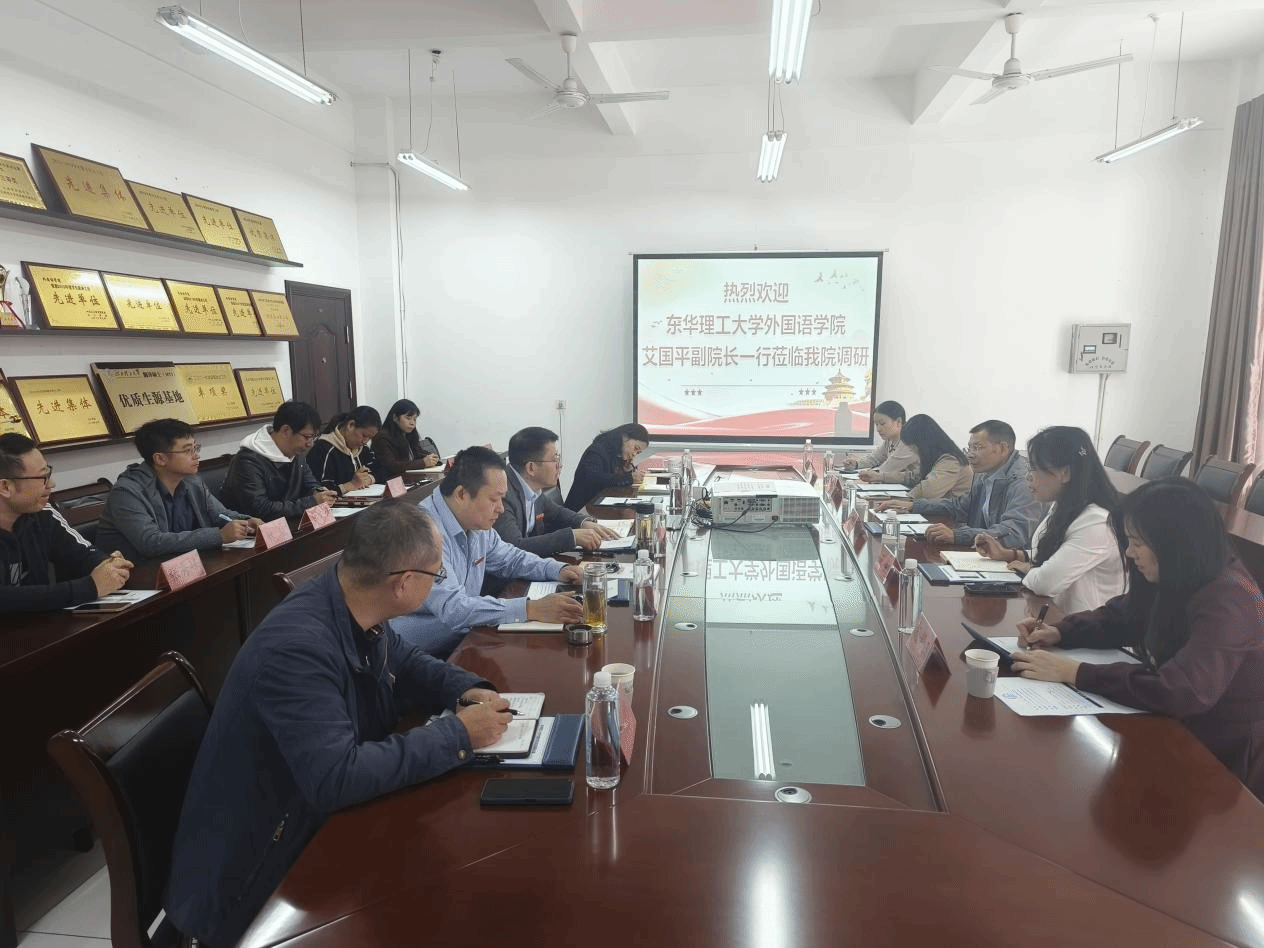 10月25日,东华理工大学pp电子游戏平台网站副院长艾国平一行5人来pp电子游戏官网调研,双方就英语师范教育人才培养、师范专业认证及第二课堂活动等相关议题进行了深入交流与探讨。pp电子游戏官网党政班子,科室负责人及英语教研室负责人参加了会议,会议由院长周志高主持。