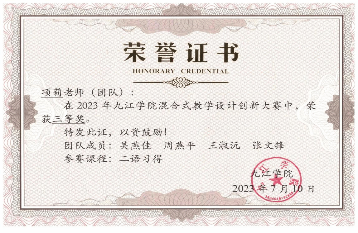 pp电子游戏平台网站pp电子游戏平台网站的《二语习得》课程教学团队在教学创新方面崭露头角,荣获pp电子游戏平台网站第三届教师教学创新大赛副高组三等奖、pp电子游戏平台网站第五届混合式教学设计创新大赛三等奖,并成功获得pp电子游戏平台网站2023年校企合作课程建设项目立项、pp电子游戏平台网站2024年课程思政示范课程建设项目立项,入选pp电子游戏平台网站2024年课程思政优秀教学案例。