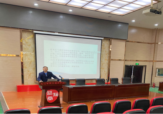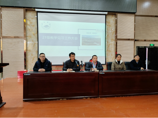 11月27日,2021级英语专业师范生教育见习在香远楼报告厅举行。王伟副院长、教务科杨莉科长、英语教研室主任张文锋博士和指导老师贺林茂、余小芳、叶牡丹参加了会议,会议由英语教研室副主任张秀峰博士主持。