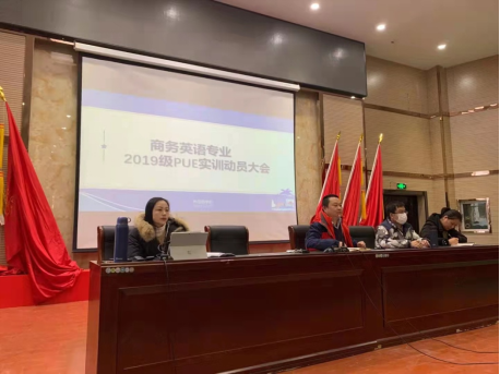 12月29日下午,pp电子游戏官网在香远楼报告厅召开2019级商务英语专业学生PUE实训动员大会。副院长王伟、商务英语教研室、学生科和教务科相关负责人以及该年级辅导员和各班班主任参加了会议。