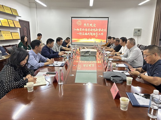 10月11日下午,江西省外语学会会长况新华、秘书长于洪颖等一行9人来pp电子游戏官网走访调研。校党委委员、副校长李松志,pp电子游戏平台网站领导班子及教师代表出席调研会。