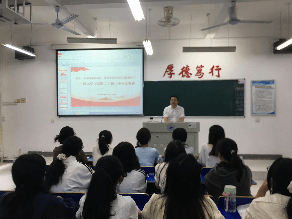 学院领导以“为进一步全面深化改革、推进中国式现代化挺膺担当”为主题,从党的二十届三中全会精神讲起,鼓励外语学院2024级大一新生,发扬军训期间不怕苦不怕累精神,努力学习,开启人生新的篇章。叮嘱同学们要坚定不移听党话,跟党走,树立远大理想,把个人发展目标与祖国现代化建设和中华民族伟大复兴结合在一起,为祖国奉献自己的青春力量。同时寄语2024级新生要热爱祖国,学好本领,尽快适应新的大学生活,完成从高中生到大学生的角色转变,在推进强国建设、民族复兴伟业中展现青春作为、彰显青春风采、贡献青春力量,奋力书写为中国现代化挺膺担当的青春篇章。