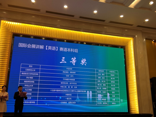 第六届大学生绿色会展创新创意挑战赛(以下简称“大赛)由江西省商务厅、江西省教育厅共同主办,中国会展经济研究会指导,南昌师范学院、江西省会议展览业协会具体承办。本次大赛共设有三个赛道:会展项目创意赛道、会展设计赛道、国际会展讲解(英语)赛道,其中国际会展讲解(英语)赛道是此项赛事第一次设置。经过校内选拔、初赛、决赛激烈竞争,最终pp电子游戏官网代表队荣获三等奖。