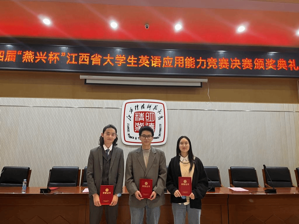 10月20日至22日,由江西省教育厅主办,江西科技师范大学和北京燕兴国际教育联合承办,江西省外语学会协办的第四届“燕兴杯”江西省大学生英语应用能力竞赛决赛在江西科技师范大学落下帷幕。经过激烈角逐,pp电子游戏官网pp电子游戏平台网站学生徐睿荣获二等奖,徐佩如、陈浩荣获三等奖。