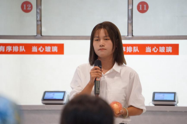 完成拉练后,两个连队会师紫薇园学生食堂,开展红军餐体验式思政课。军训营为夺得旗帜的班级个人颁发了奖励——一个苹果。退役军人张梦楠同学深情讲述了《上甘岭一个苹果的故事》,全体学生高唱《英雄赞歌》,表达了对革命先烈的敬仰和走好新长征路的坚定决心,发出了“请党放心,强国有我”的青春誓言。