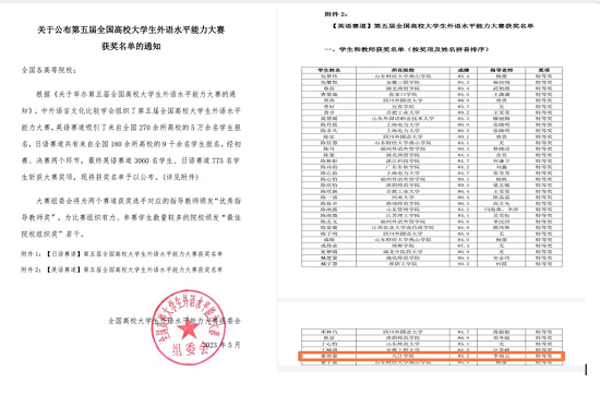 5月13日,由中外语言文化比较学会(国家一级学会)举办的第五届全国高校大学生外语水平能力大赛圆满落下帷幕。经过激烈角逐,pp电子游戏官网pp电子游戏平台网站5名学子分别斩获特等奖1项,一等奖1项,三等奖3项。