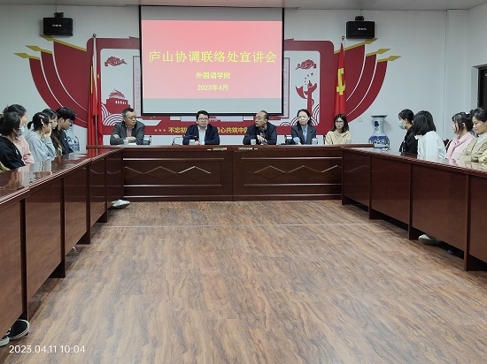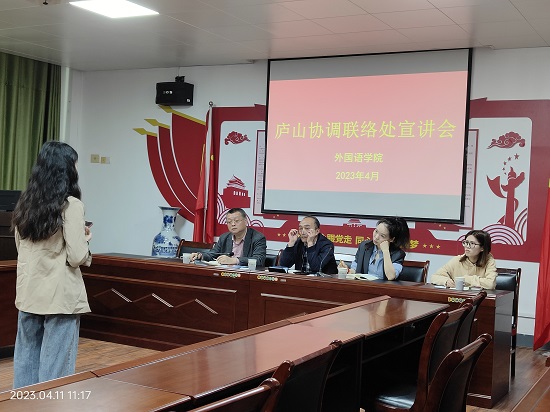 为做好2023届毕业生就业工作, 拓宽就业渠道,4月11日,庐山协调联络处在香远楼315会议室举行了招聘宣讲会。pp电子游戏平台网站院长周志高、庐山协调联络处处长许峰一行四人、毕业班辅导员和在校毕业生三十余人参加了宣讲会。