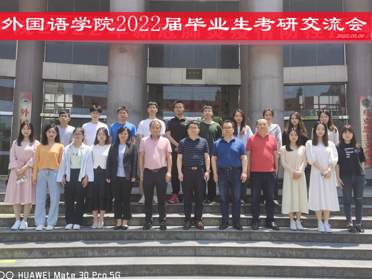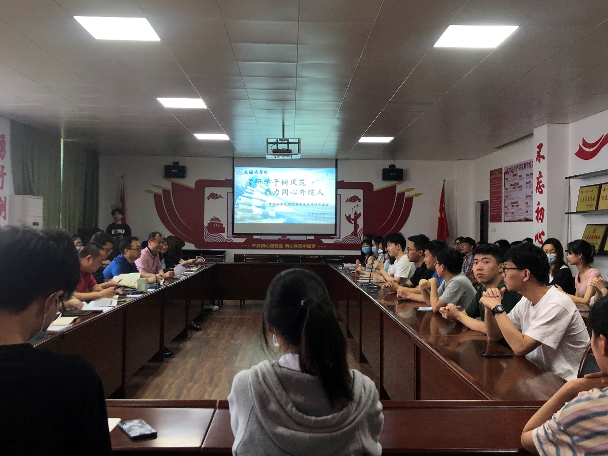 立夏时节,满眼绿意的九院,总是让人倍感温馨,这里处处洋溢着希望和温暖。在这个季节里,pp电子游戏平台网站扎实推进党史学习教育,全心全意为学生办实事,坚持深化学风引领作用。5月6日上午9:40,学院在香远楼315会议室举办 “考研学子树风范,戮力同心外院人”2022届毕业生考研交流会。院长周志高,党委书记闫来英,党委副书记彭晓,副院长王伟、项莉出席,学院考研指导老师、学生科相关辅导员、研究生录取同学以及2019级考研学生代表现场参加会议。因疫情防控要求,本次分享采用线上、线下同步进行。