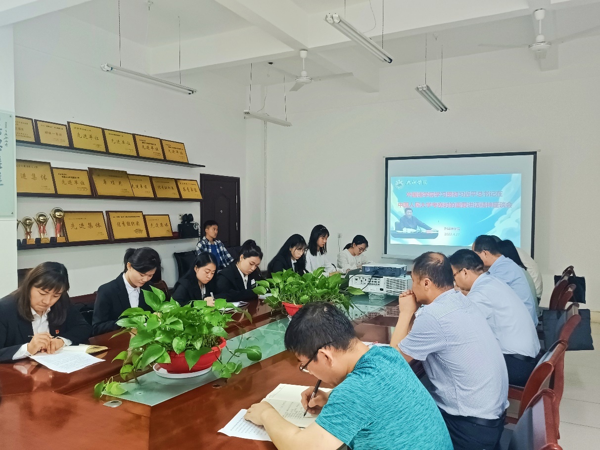 学生科副科长何智博讲道:“作为一名高校工作教育者,我们要时刻以高标准要求自身,用思想政治理论课在立德树人中发挥应有作用。我们要以习近平总书记重要讲话精神为思想指导,科学引导广大青年大学生堪当民族复兴重任的时代新人,在实现中华民族伟大复兴的时代洪流中踔厉奋发,勇毅前进。”