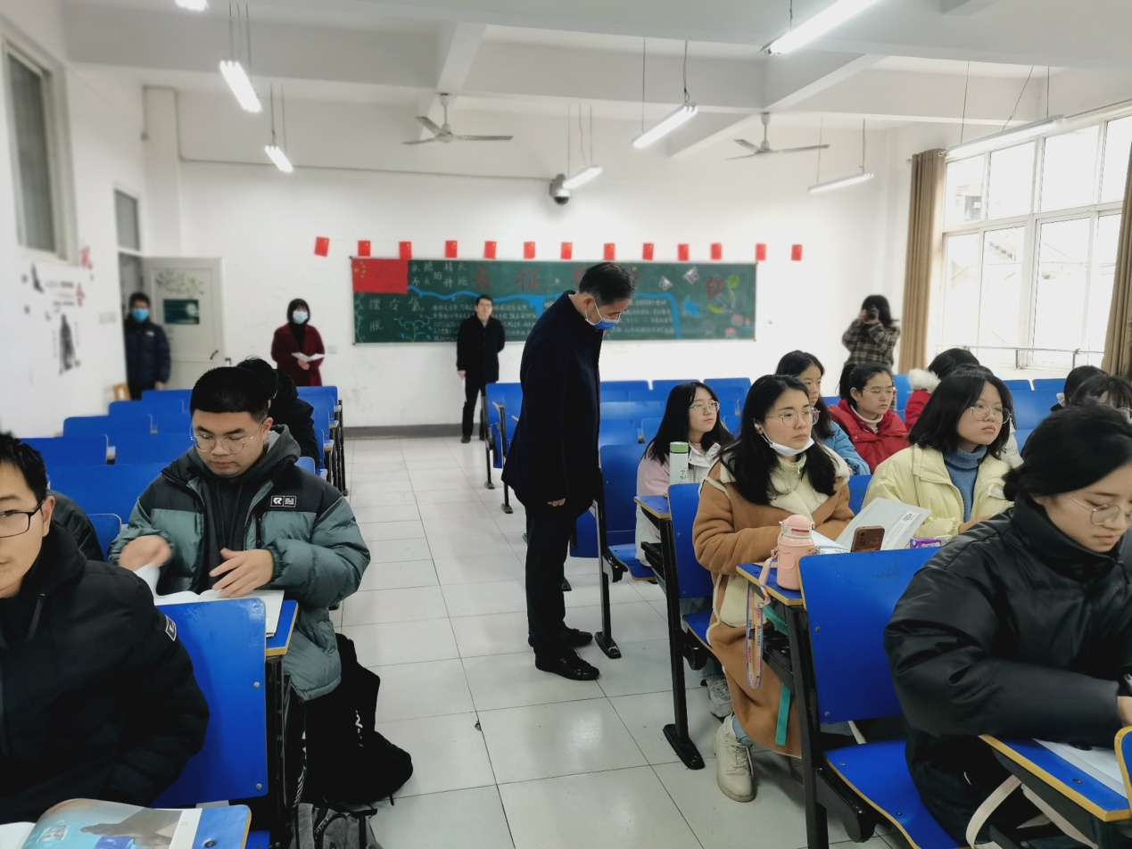 赵伟走访了pp电子游戏平台网站各教室,亲切问候学生们的寒假生活,仔细查看教师的授课情况和课堂教学要点,关注学生的学习状态,全面把握教情和学情。他对学生们的课堂表现、上课纪律予以表扬,充分肯定了授课老师的精彩讲授。他鼓励同学们好好珍惜大学时光,努力成长成才,最后要求pp电子游戏平台网站全体教职工增强责任意识,提高工作主动性,为学生学习和生活保驾护航。