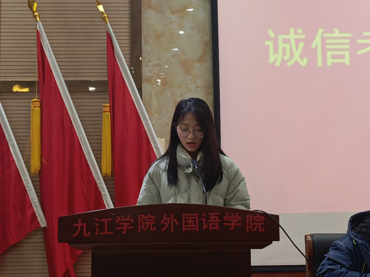 随后,A1913班古欣颖代表同学们发言并作诚信考试承诺。