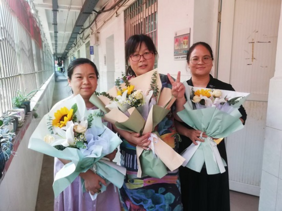 “这也太惊喜了,太幸福了!”“这个教师节很别样!”“这是专属我们外院的小浪漫!”老师们接过领导们手上的鲜花,幸福的笑容在他们脸上绽放。