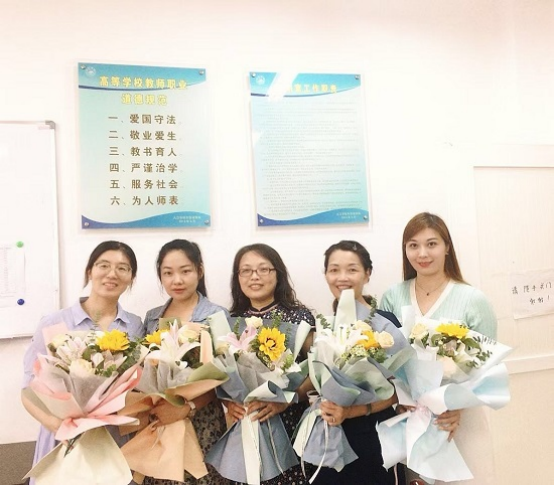 学院为全院每位教职工精心准备了鲜花,领导们一个个化身送花大使,把一束束鲜花送到每位老师手中。“老师们辛苦了,祝你们节日快乐!希望你们的生活像花一样幸福灿烂,并把这种灿烂绽放到学生的心田,铭记教书育人的使命,以人格魅力引导学生心灵,以学术造诣开启学生的智慧之门”。