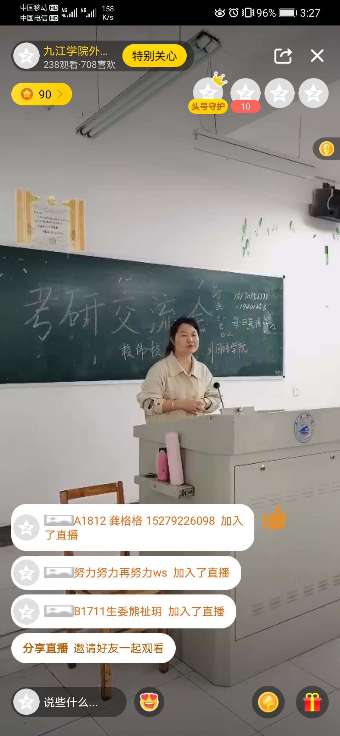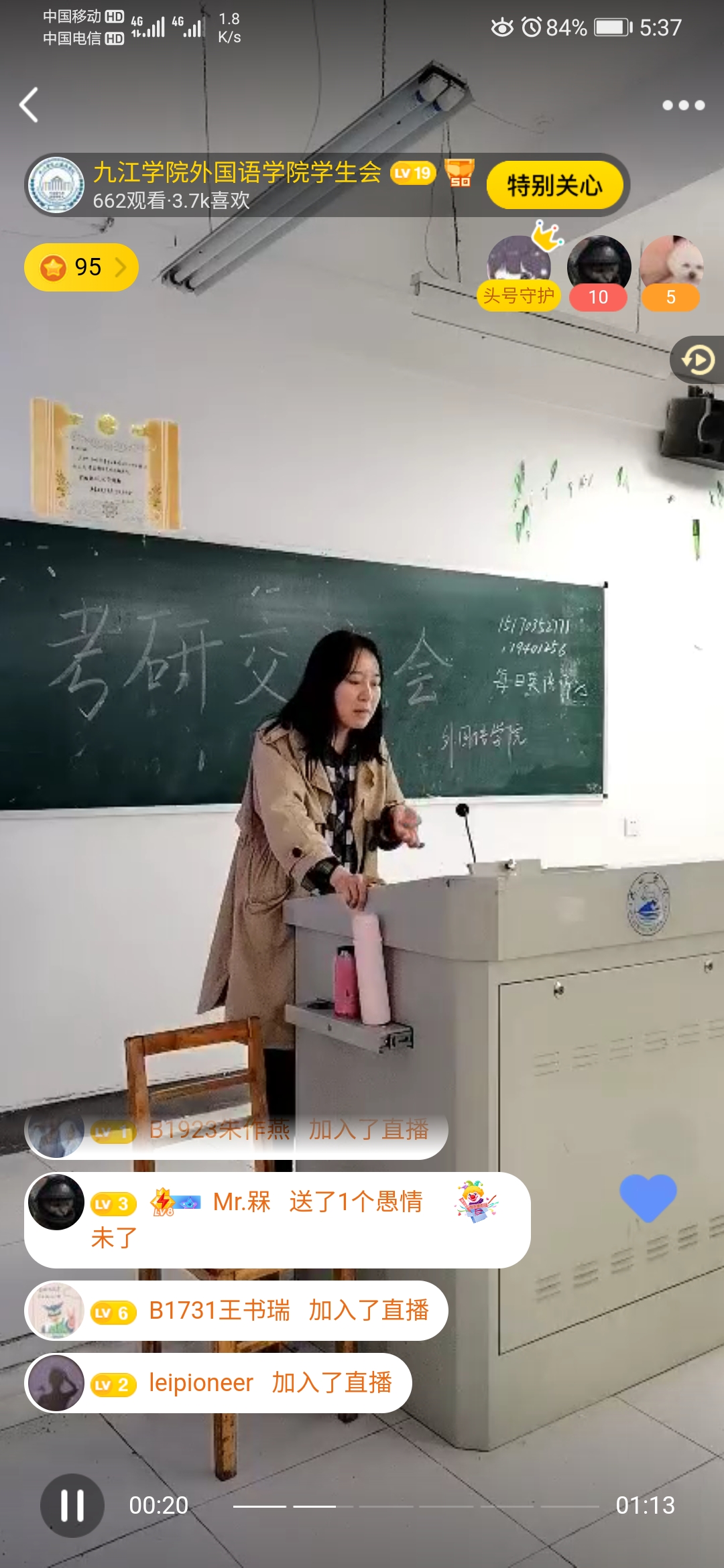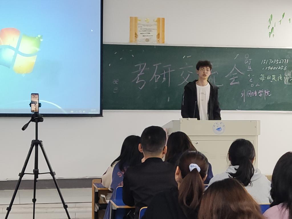 为落实党史学习教育有关工作安排和“我为师生办实事”实践活动要求,进一步加强学风建设,提高学生考研热情,pp电子游戏平台网站于4月24日下午在香远楼306教室开展考研经验交流会,活动由A1911班姚思吟主持。本次考研交流采用了现场交流和线上直播的形式,线下有100余人现场参加,线上有近700人观看。