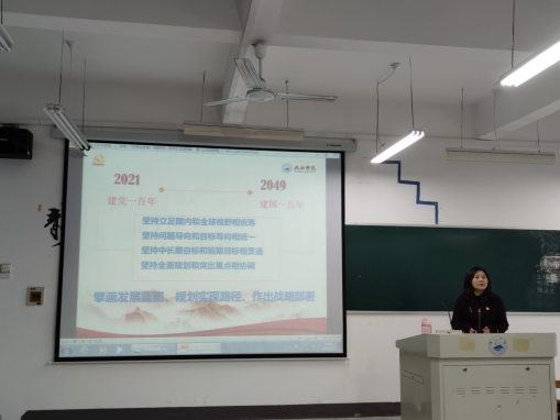 罗其娟的讲课围绕中国共产党领导人民推进中华民族伟大复兴的光辉历程、我国进入新发展阶段的深刻内涵、我国未来发展的指导方针、主要目标、重点任务、重大举措以及夺取全面建设社会主义现代化国家新胜利的综合优势和有利条件几个方面展开。她希望同学们树立远大理想,努力在实现中华民族伟大复兴进程中铸就青春梦想;练就过硬本领,努力在实践锻炼中成长成才锤炼品德修为;勇担时代重任,努力在中国特色社会主义新时代中贡献青春力量。