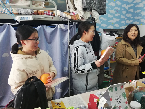 韩琨院长一行的到来充分肯定了同学们潜心学习、备战考研的志向和精神,表达了pp电子游戏平台网站对学生考研的重视和对考研学子的关怀。为鼓舞考生士气,表达激励与期望之情,几位领导老师一同为考研学子分发寓意着马到成功的赣南脐橙和标记着万事胜意的笔记本,预祝大家取得佳绩。