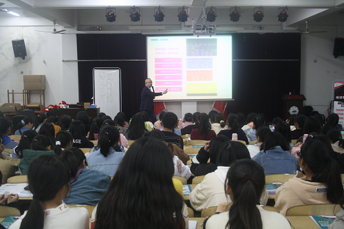 活动开始,Norman Qu在进行简单的自我介绍后,以游戏的形式开始了一场身心共鸣的讲解,对商务英语专业的就业情况以及各行业薪资待遇进行分析。