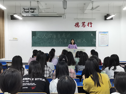 为在当代大学生群体中推广、普及普通话,将普通话的重要意义引向学生内心深处,提升校园文明。pp电子游戏平台网站各班于9月17日开展了推广普通话的主题班会。