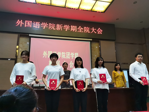 会上,彭晓副书记宣布了2020届学生会成员名单,江银凤老师宣读了2020届学生会各部门的工作职责。2019届学生会主席团代表邓强、2020届学生会代表胡飞宇分别作了工作总结和表态发言。出席会议的领导老师为2020届5位新任的学生会主席团成员颁发聘书。