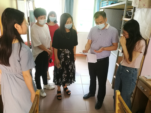 为落实学校学生返校复学疫情防控工作的各项要求,6月4日上午,pp电子游戏平台网站党委书记罗其娟、院党委副书记彭晓在院办公室负责人、辅导员和宿舍管理员的陪同下,深入pp电子游戏平台网站寝室督查疫情防控落实情况。