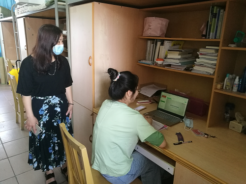 罗书记一行特意查看了正在宿舍内进行线上课程学习的同学,详细了询问了学生上课情况、网络情况、线上课程内容与效果等情况,并叮嘱同学们坚持线上学习,按时作息,充分发挥线上学习的优势,努力提高专业技能。