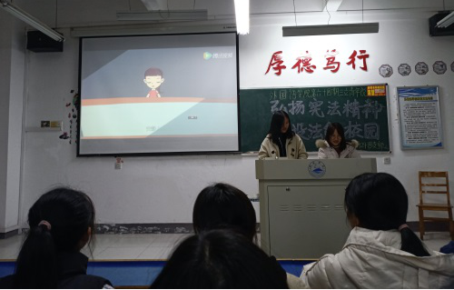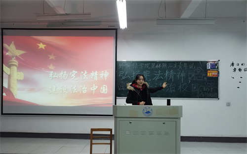 为了增强大学生的法制意识,推动当代大学生积极学习宪法,弘扬宪法精神,落实“国家宪法日”的宣传教育。12月5日pp电子游戏平台网站大一年级各班在香远楼开展了以“弘扬宪法精神,建设法制校园”为主题的第64期三立青年说暨团日活动。