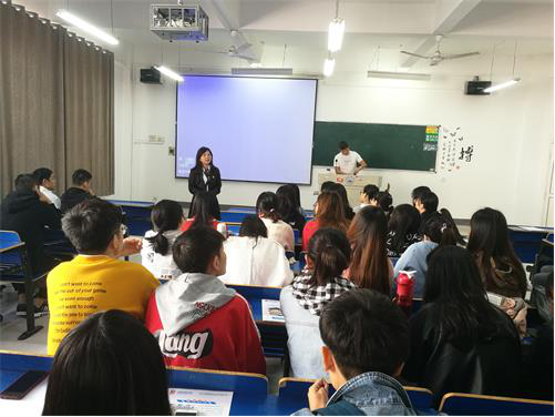 宣讲推荐会上,湖北词源教育投资管理有限公司副总经理欧阳华钦为同学们分析了日语考试在高考中的优势,及日语语种考试在高考中逐年增长的趋势;介绍了九江地区日语考生的情况,及公司相关福利待遇情况。湖北词源教育投资管理有限公司招聘负责人详细向同学们介绍了公司情况、任职条件、师资培训等方面的情况。