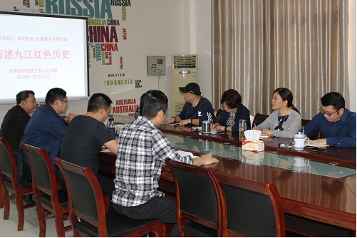 10月22日下午,pp电子游戏平台网站党委委员、教工第八支部书记邓海波在香远楼219会议室为党员上主题党课——《简述九江红色历史》,这是pp电子游戏平台网站落实“不忘初心、牢记使命”主题教育的一个缩影,第八支部党员参加。