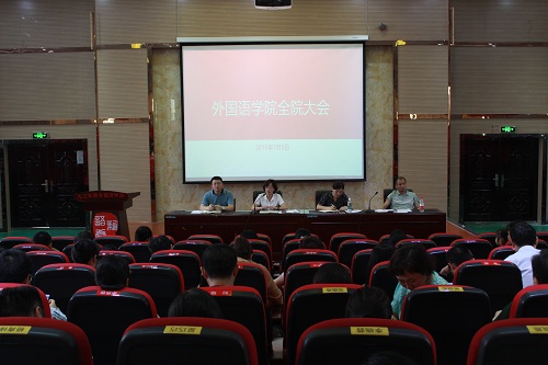 韩琨院长从落实学校评估整改年、学院年初工作要点的角度,回顾总结了本学期的工作,指出各项工作达到了预期目标,主要是高层次人才引进工作成效明显,教科研活动丰富,课程思政团队建设扎实推进,校企合作深入开展,教研室规划调整等。同时,详尽安排了暑假的教师教育教学专业培训、实验室项目招标落地、办公区环境改造提升、建国70周年献礼大合唱排练等工作。