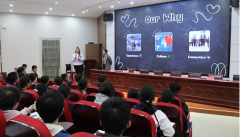 活动伊始,湖口中学校长王先兰对pp电子游戏官网人员的到来表示热烈欢迎。在随后的讲座中,pp电子游戏官网邀请的新西兰志愿者Stacy和Te Heeri以生动的语言和丰富的素材,向在场的150名高三学生全面介绍了新西兰的风土人情,并重点讲解了独具特色的新西兰文化,现场气氛活跃,学生们兴致盎然。