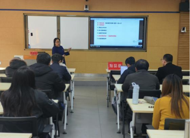 12月19日下午,东华理工大学pp电子游戏平台网站院长廖华英教授应邀来pp电子游戏官网新语堂,为老师们带来题为“课程为‘舟’,思政为‘舵’,‘赋’能中国文化传播者——全国高校教师教学创新大赛课程设计分享”的精彩讲座。本次讲座吸引了众多教师聆听学习。