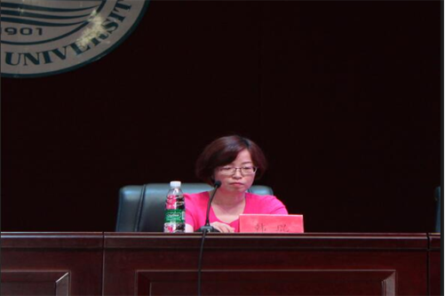 韩琨院长致辞,她对792名新生的到来表示热烈的欢迎和最诚挚的祝福。韩琨院长就pp电子游戏平台网站的师资力量、专业设置、教科研成果、硬软件设施以及生源结构等基本情况作了简单介绍。韩院长说,pp电子游戏平台网站是一个充满朝气和希望的学院,长期以来,一代又一代外院人秉着“外显精气神,语藏锦绣文”的院训扎实努力,奋勇拼搏,在外院史册上载下一个又一个辉煌,希望2019级新同学能够顺着学长学姐的脚步,为外院谱写新的篇章。最后,韩琨院长对同学们提出了几点希望:第一希望大家苦练语言基本功,以扎实的外语功底为基础,培养跨文化的深度沟通、交流、合作能力;第二希望同学们多读书,通过广泛的阅读提高思辨能力和国际问题分析能力;第三希望大家先做人再做事,增强明辨是非的能力以及担当意识,做“知礼节,懂规矩,讲文明,有品位”的人;第四希望大家注重身心健康,坚持锻炼身体,造就坚强的意志和宽广的胸怀。