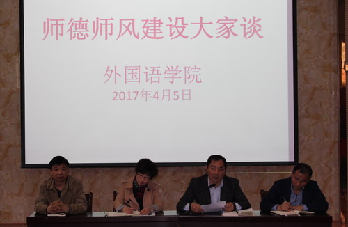 按照《pp电子游戏平台网站2017年师德师风建设实施方案》的要求,发挥身边典型的示范引领作用,外语师德师风先进个人大外一教研室刘洋老师和小语种教研室的苏琪老师,现身说法谈优秀师德师风的现实表现和经验作法。