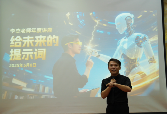 5月8日晚,学院就业专职辅导员李杰老师以“人工智能与未来就业的深度思考”为主题,在香远楼报告厅为200余名师生带来一场前沿讲座。本次讲座聚焦AI技术对外语专业学生职业发展的影响,通过理论解析、案例分享与互动问答,为在场师生描绘了人工智能时代语言专业学生的机遇与挑战。