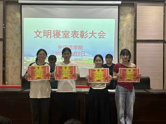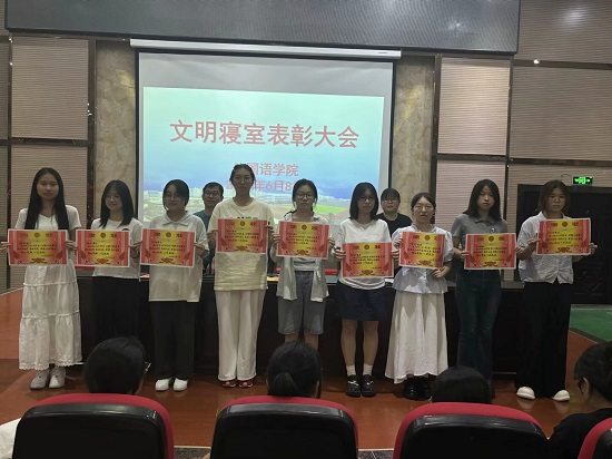 表彰会上,南秋芬老师宣读了文明寝室称名单,共有22个寝室获此荣誉。获奖寝室代表依次登台领奖,自豪之情溢于言表。这些文明寝室在卫生安全、行为规范、学习氛围等方面都表现出色,为同学们展现了整洁有序、积极向上的寝室风貌。老师们对获奖寝室表示祝贺,并希望他们能够继续保持,发挥模范带头作用,同时倡导其他寝室向榜样学习,携手打造温馨、和谐、文明的寝室环境,让文明寝室建设蔚然成风。