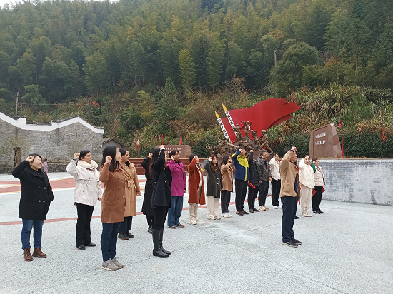 集体过政治生日、重温入党誓词。参观完旧址,大家来到红军广场,举行集体政治生日,重温入党誓词。活动由教工第一党支部书记张南主持。教工第二党支部书记陈娟向邹晓燕等党员代表赠送生日贺卡,送上生日祝福。来自教工第一党支部的贺林茂教授代表老一辈党员向三位政治生日党员同志致贺词,勉励年轻党员强化党员宗旨意识,发挥党员先进模范作用,不负共产主义信仰。过政治生日的党员依次发表感言,重新回忆党组织对自己的培养历程,表示将会继续在工作中保持孜孜不倦、无私奉献的精神。最后,教工第三党支部书记姚中平领誓,党员同志们面向党旗列队站立,一起重温入党誓词。一声声誓言铿锵有力,回荡在空旷整洁的红军广场,激励着同志们凝聚信仰,汇聚力量。