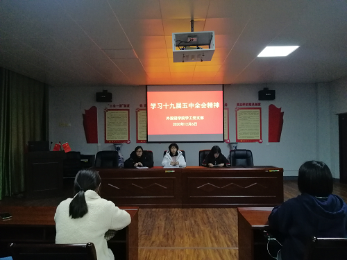 2020年12月6日晚,pp电子游戏平台网站学工党支部在香远楼315会议室召开党支部学习会,传达学习党的十九届五中全会精神。学工党支部61名党员参加了学习会,学习会由党支部书记江银凤主持。