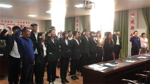 全体党员在罗其娟的带领下,面向党旗,举起右手,庄严宣誓:我志愿加入中国共产党,拥护党的纲领,遵守党的章程,履行党员义务,执行党的决定,严守党的纪律,保守党的秘密,对党忠诚,积极工作,为共产主义奋斗终身,随时准备为党和人民牺牲一切,永不叛党!
