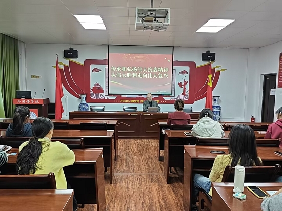 10月26日,院党委副书记江山以《传承和弘扬伟大抗战精神,从伟大胜利走向伟大复兴》为题,为本期学员作专题辅导报告。报告从伟大抗战精神的形成、迸发出的精神力量及铸就的精神丰碑,阐释了传承和弘扬伟大抗战精神的重大意义。江书记还指出,伟大抗战精神是中华民族宝贵的精神财富,其核心是坚韧不拔、自强不息。希望同学们能深刻理解伟大抗战精神的内涵和意义,在未来的学习和工作中,传承和弘扬伟大抗战精神,踔厉奋发、勇毅前行,为以中国式现代化全面推进强国建设、民族复兴伟业贡献自己的力量。